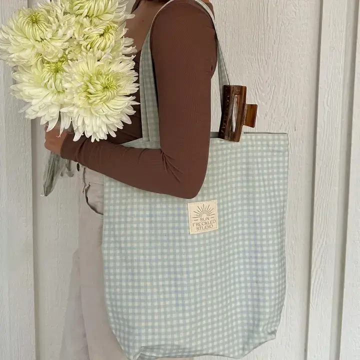 Blue Gingham Tote Bag