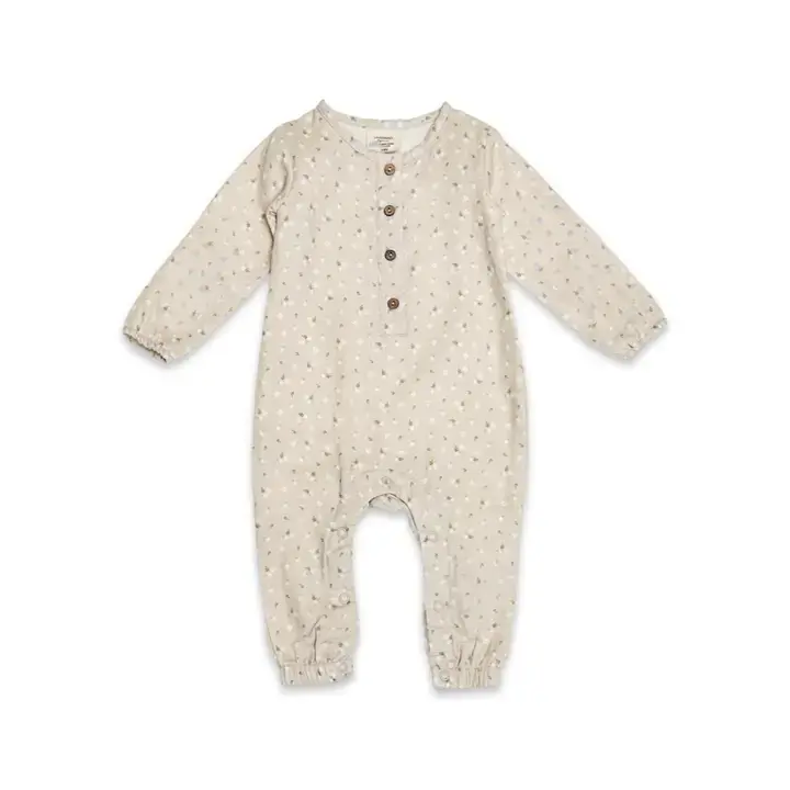 Long sleeve organic muslin jumpsuit coverall for babies. Button front closure, snap buttons at the crotch for easy diaper change. - Soft, lightweight, breathable, cozy, and comfy; perfect for spring and summer. - Digitally printed for extra softness. - Chemical free & non-toxic formulation, eco-friendly & sustainable. - Machine wash and dry, durable and long lasting. - Ethically produced in India from small farmer sourced cotton. Viverano, an American brand, was founded in 2013 with the simple idea of producing eco-friendly, pure and organic baby clothes. Viverano baby clothing is known for its soft hand feel and high quality. Pamper your precious babies with our non-toxic, lightweight, all-season, natural baby outfits. Experience 'Organic Comfort' by Viverano, a family-owned small business.