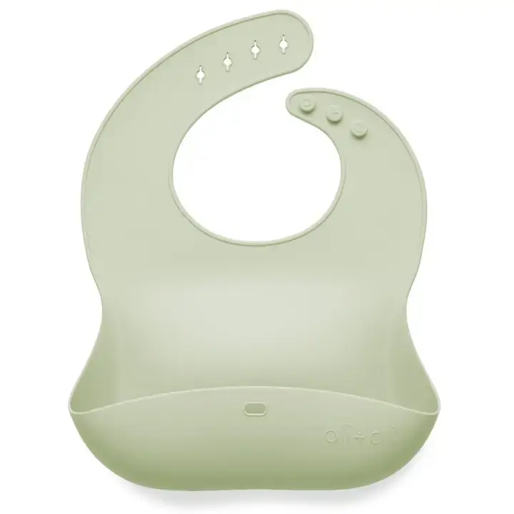 Our brand new roll-up & stay closed bib has the same features as our original bib, but now we added a little button so it can be closed. This is great since it makes it easy to store at home and on the go in your diaper bag. The bucket of the bib now serves as storage for utensils. Easy to spot from counterfeit products since our bib is branded in 4 different areas. Soft Food Grade silicone that's gentle on your baby's neck and won't irritate Adjustable reinforced straps and button holes make them ideal for infants to toddlers of all sizes Specially designed bucket contour catches almost everything dropped Waterproof and easily wiped clean or top-shelf dishwasher safe if needed Rolls up and stays closed with the new button to fit into diaper bags and purses CPSIA Tested and Certified