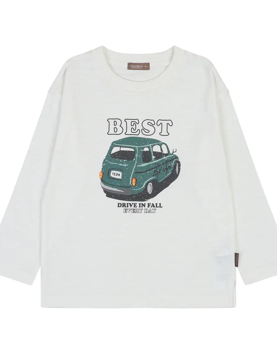 With its relaxed, stylish fit, and vintage automobile graphic, this textured white long sleeved tee is a great pick for both boys and girls. *ToTo Heros is a Korean brand, so our tag sizes range from 100 to 150, based on children's height. Please refer to the size chart at the end of the photos for more details. 100 (XXS/1-2Y), 110 (XS/2-3Y), 120 (S/4-5Y), 130 (M/6-7Y), 140 (L/7-8Y), 150 (XL/8-9Y). ***The care label reads 'Hand Wash,' but all cotton items are preshrunk and can be washed in a washing machine on a gentle cycle using a mild detergent.